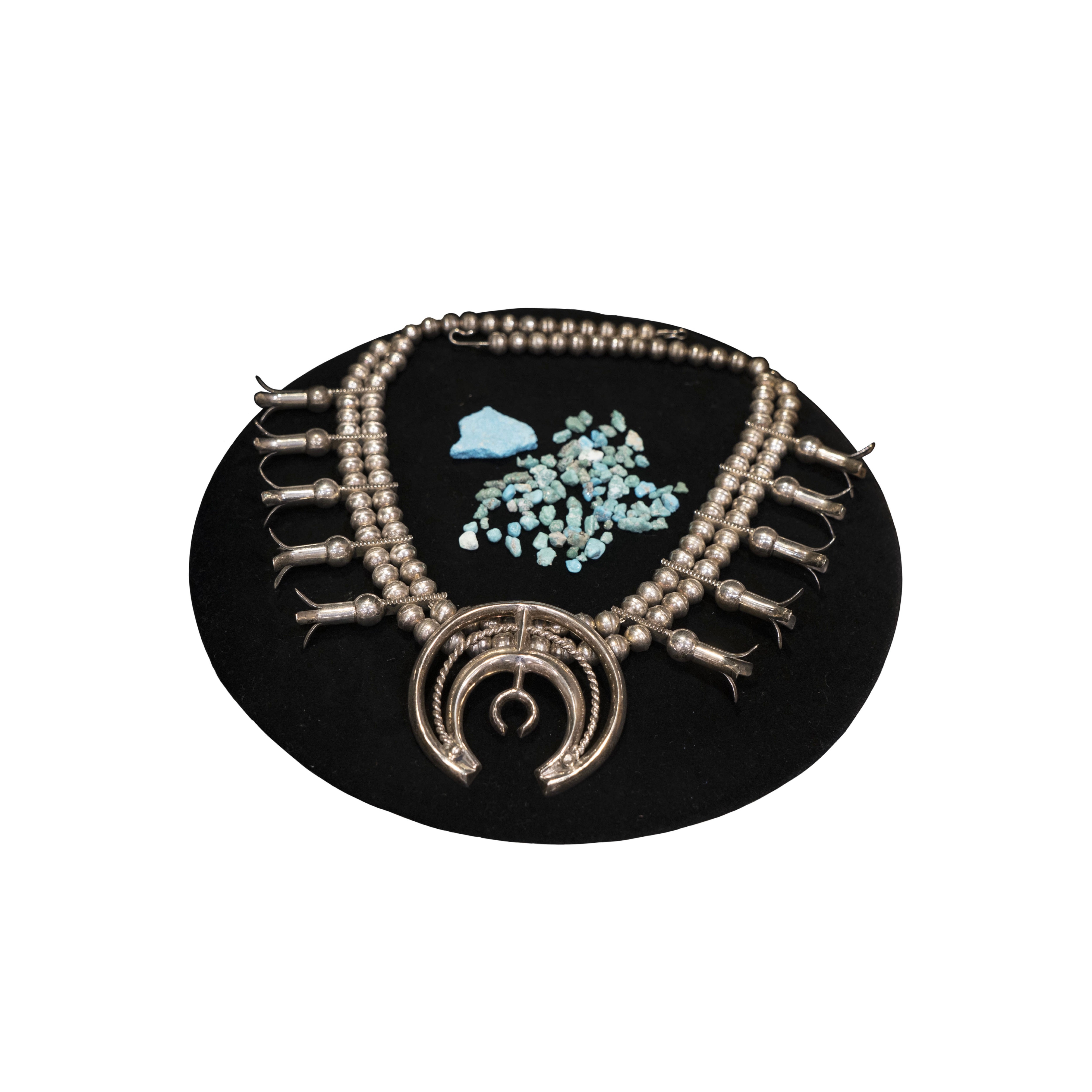 Indulge in elegance and sophistication with our Sandcast Squash Blossom Sterling Silver Necklace. Made with premium sterling silver, this necklace exudes luxury and exclusivity. Perfect for adding a touch of refinement to any outfit. Treat yourself to this timeless piece of art.