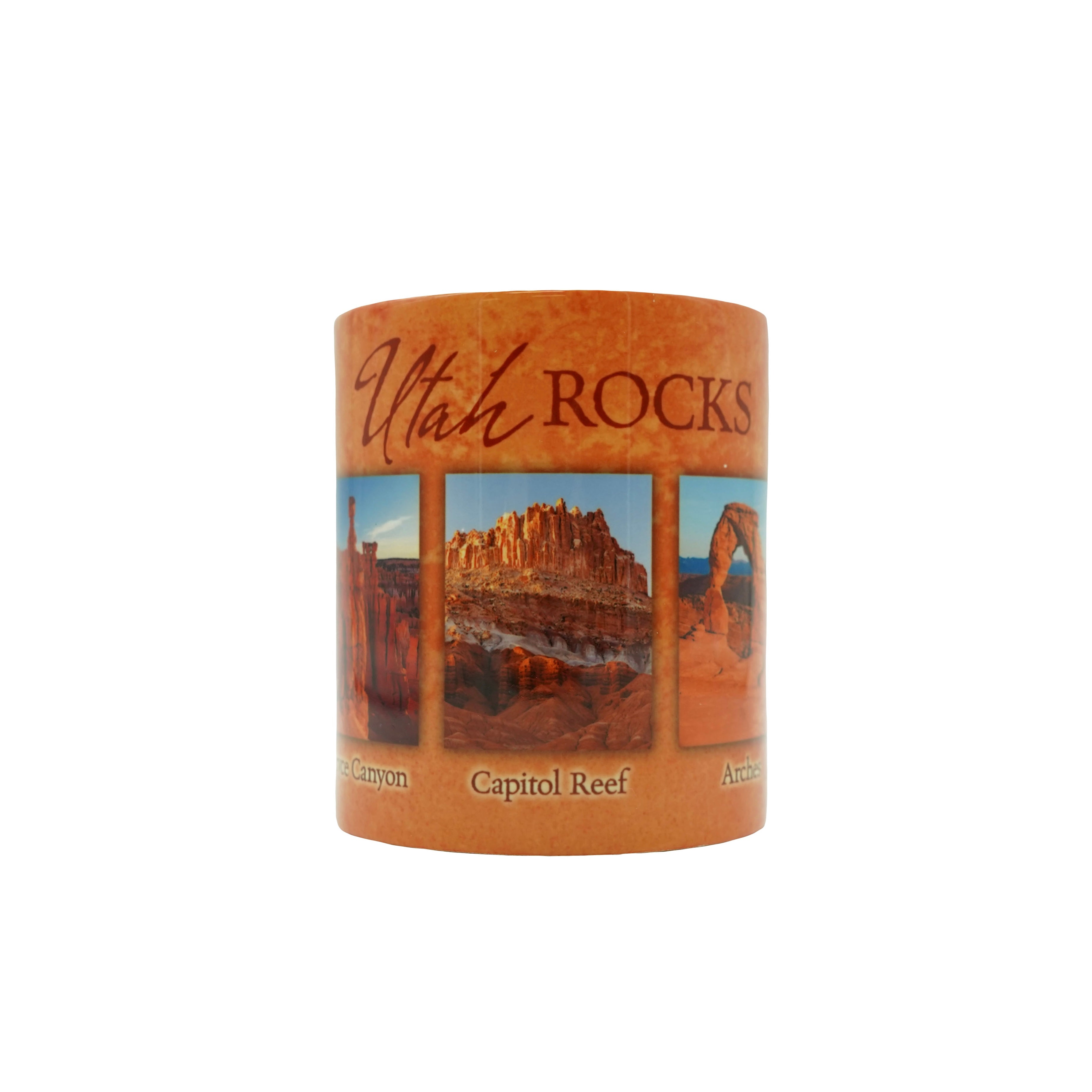 Start your day with a taste of adventure! This Utah Rocks Mug celebrates the stunning landscapes of Arches, Bryce Canyon, Canyonlands, Capitol Reef, and Zion National Parks—all in one beautifully designed keepsake. Featuring vibrant, high-quality artwork of the most iconic rock formations from each park, this mug is a must-have for any national park lover.