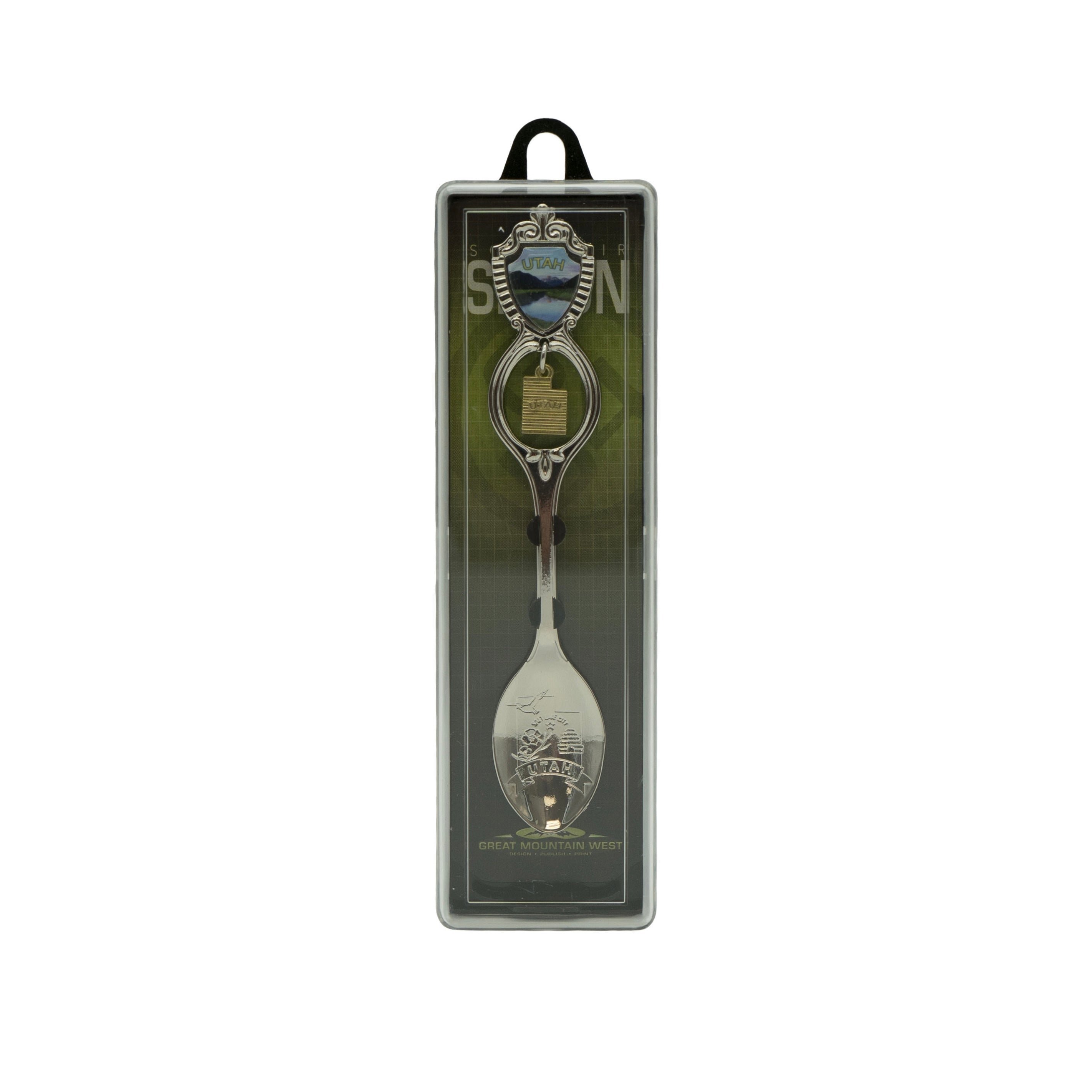 Take home the beauty of Utah with our Souvenir Spoon. Crafted with a silver finish, it features a charming Utah charm and intricate carving of the state. A perfect memento of your trip, it will bring back fond memories.