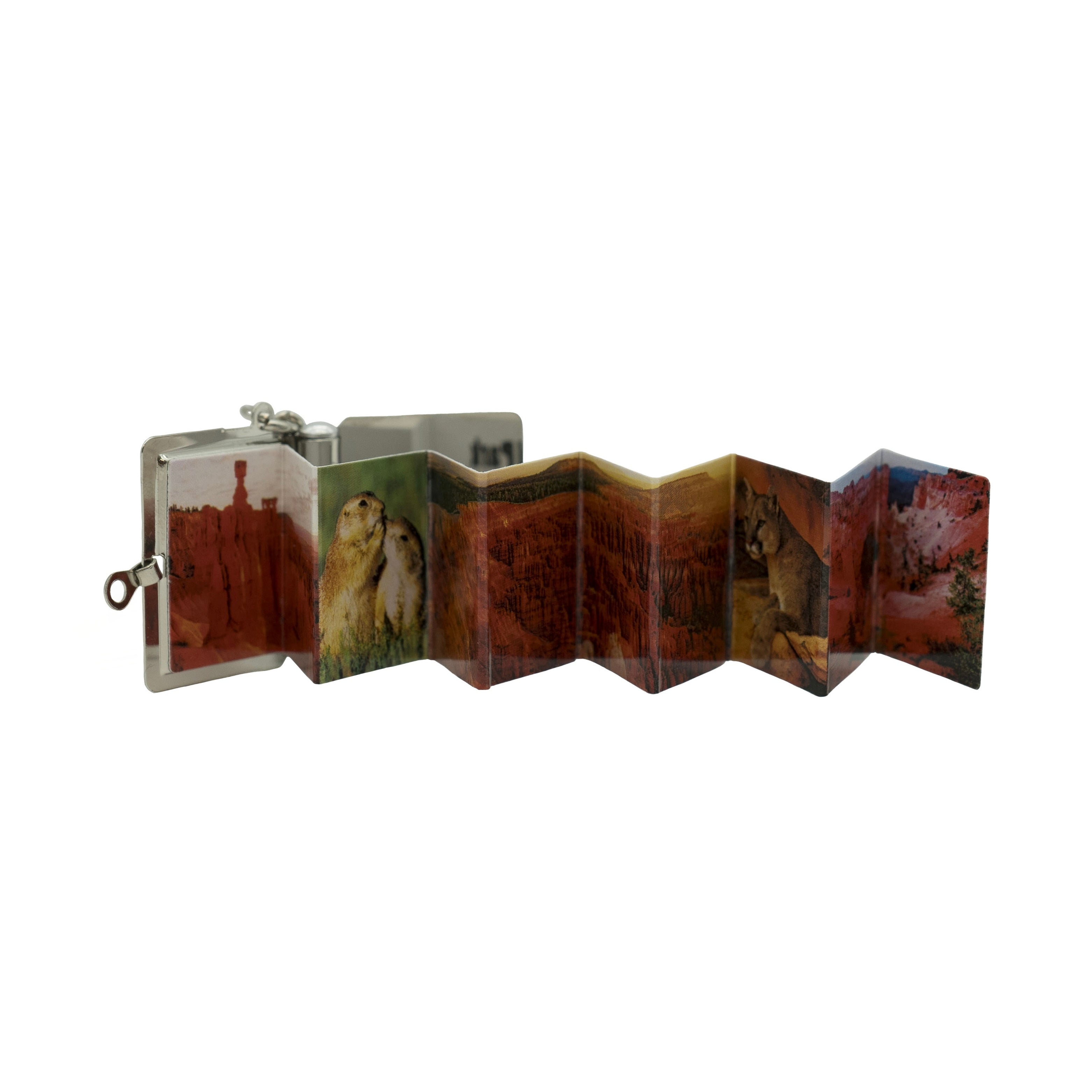 Easily carry a piece of Bryce Canyon with you everywhere with our lightweight keychain book. Opens to reveal stunning pictures of the canyon in a unique and eye-catching design. Perfect for nature enthusiasts and travelers.
