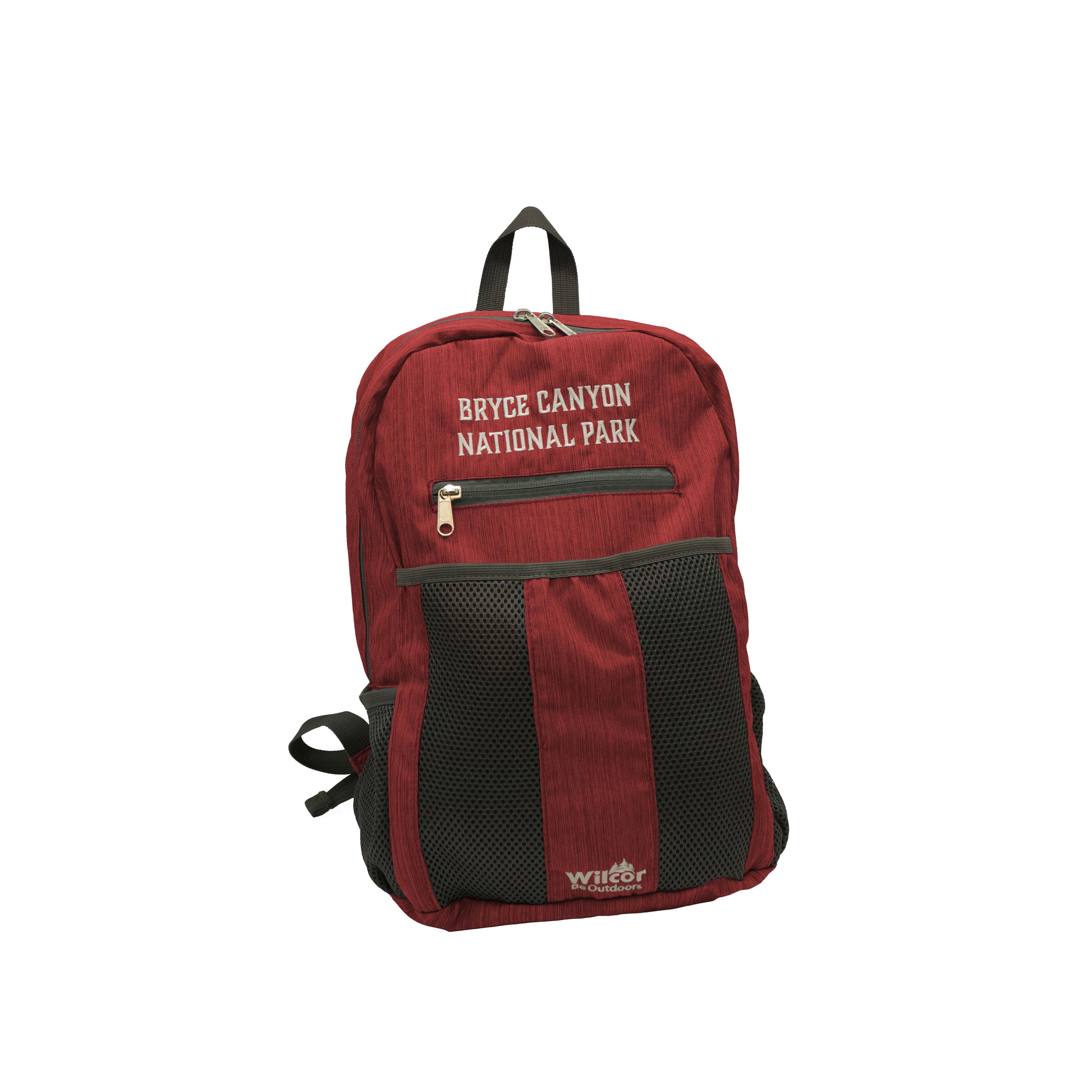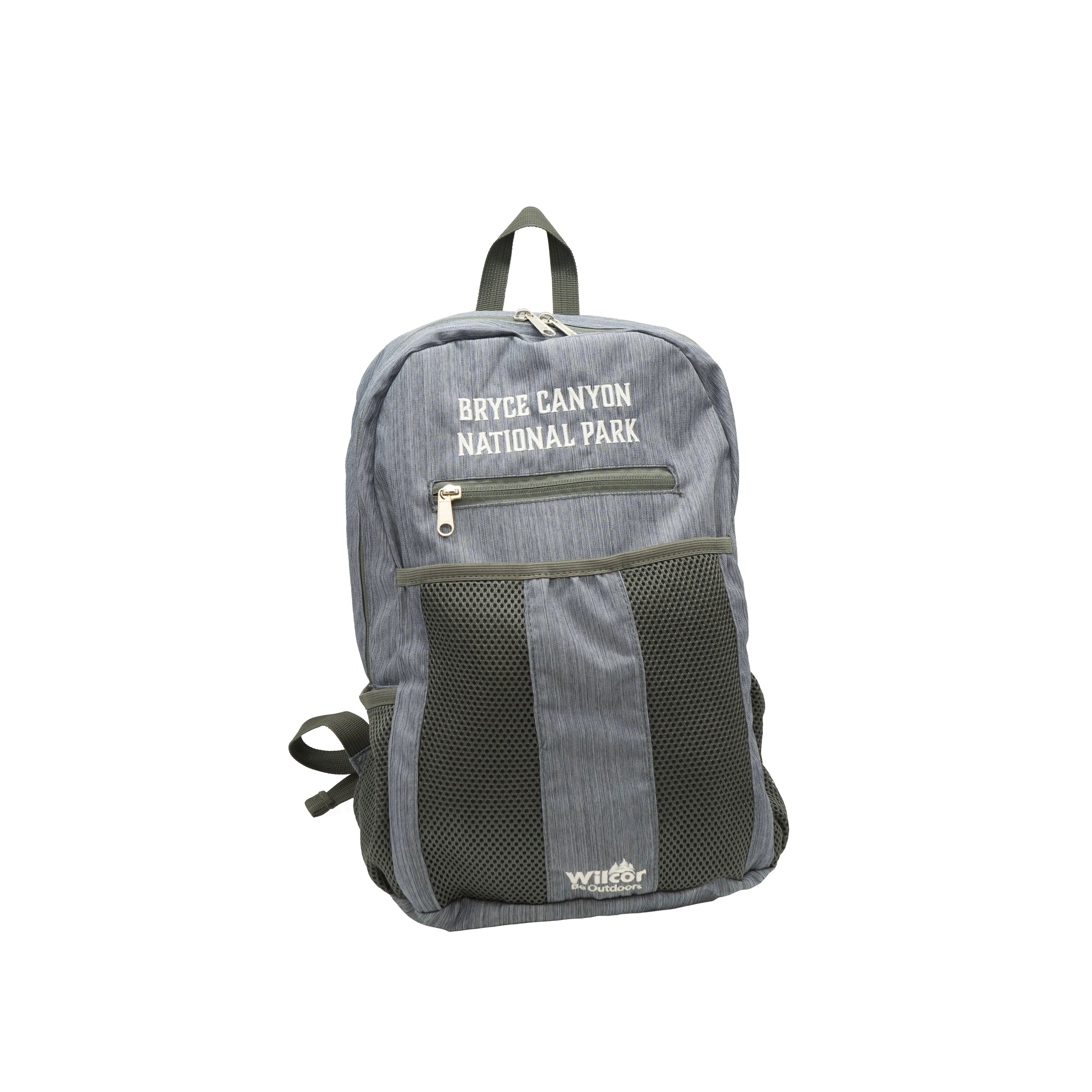 Experience the comfortable Bryce Canyon Compact Backpack 22L! This stylish bag features a unique embroidered design and can be easily turned inside out for compact carry. It's perfect for on-the-go adventures. Don't miss out on this must-have backpack!