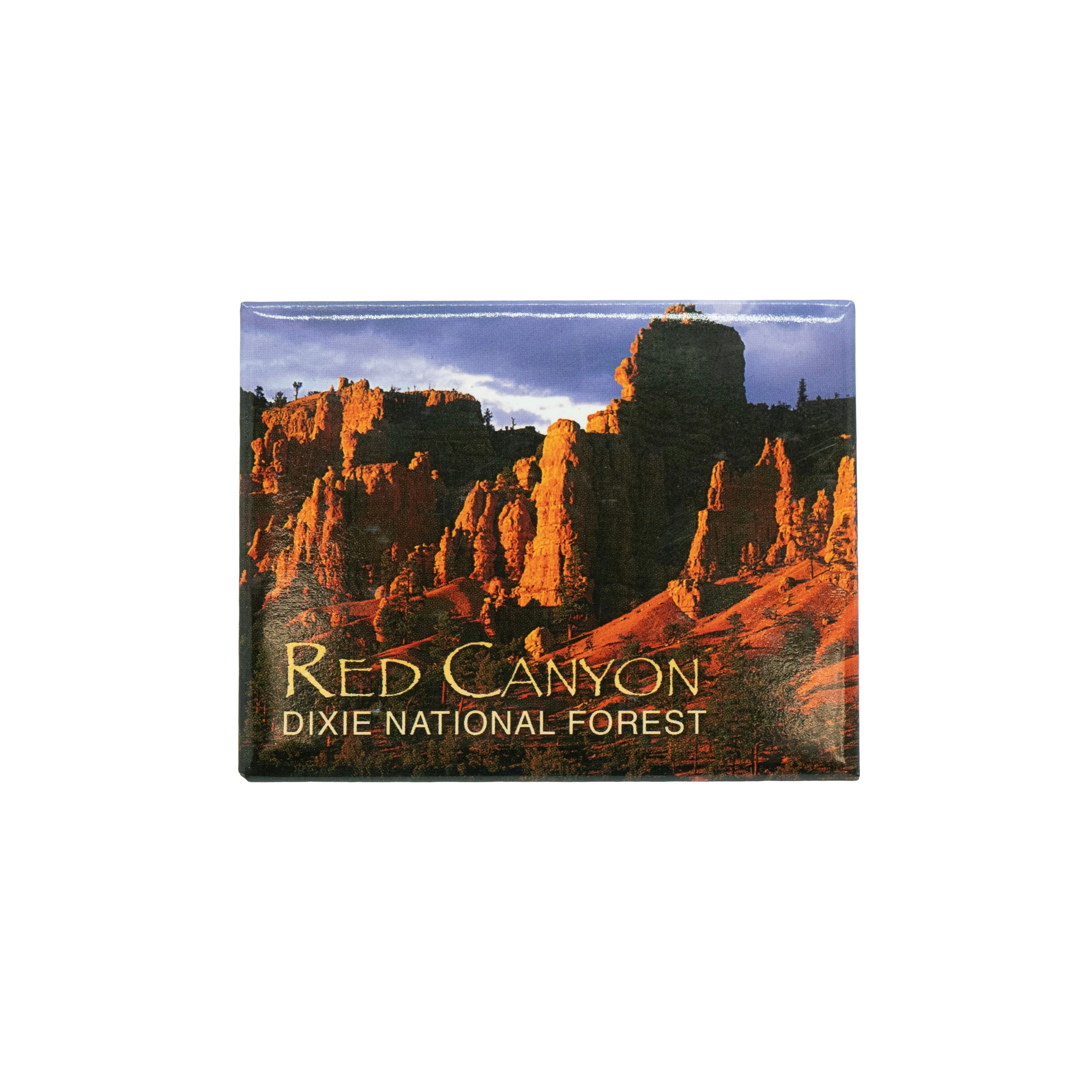 This magnet captures the magic of a late sunset in Red Canyon, with long shadows stretching across the landscape. The warm colors and peaceful scene make it a perfect memento from your visit.