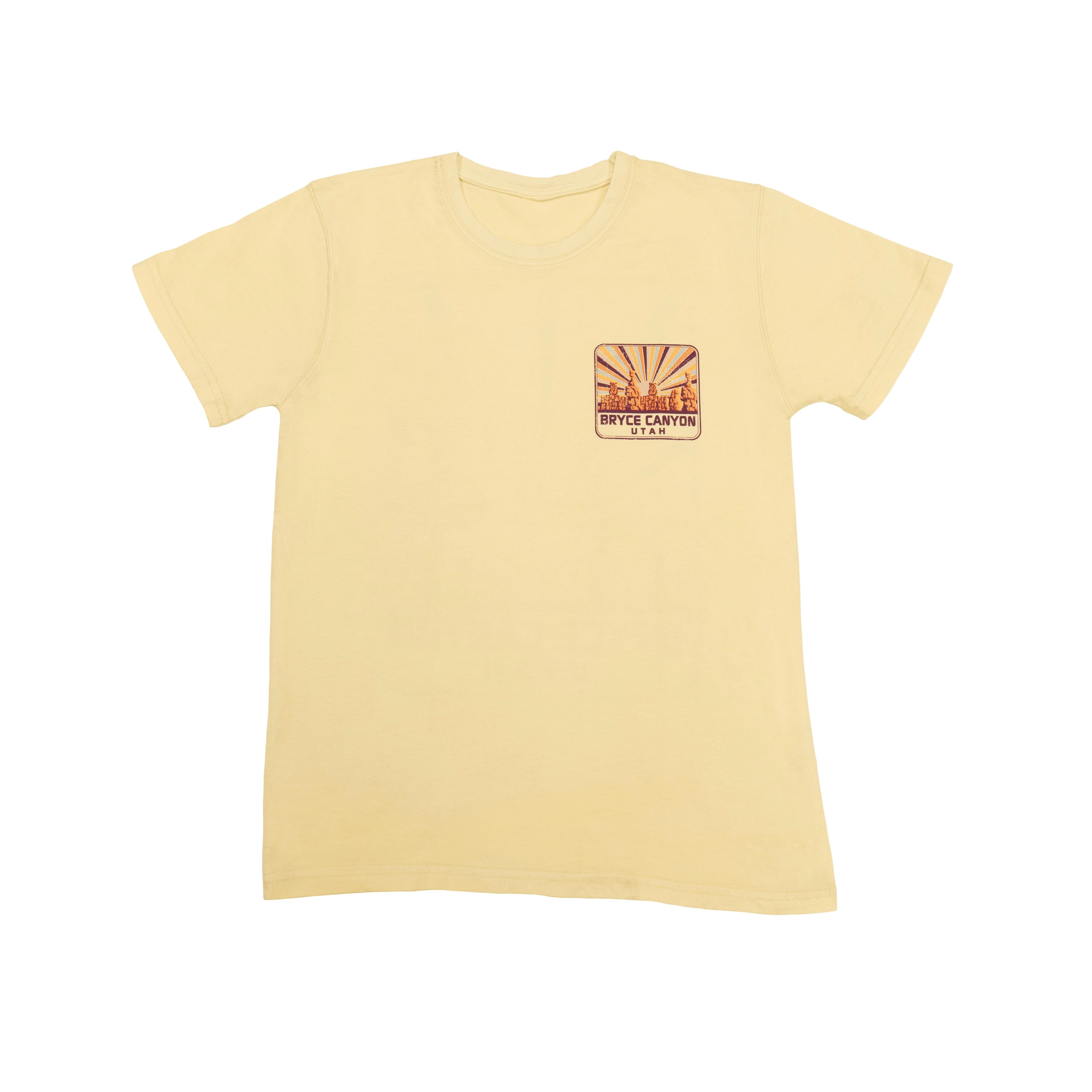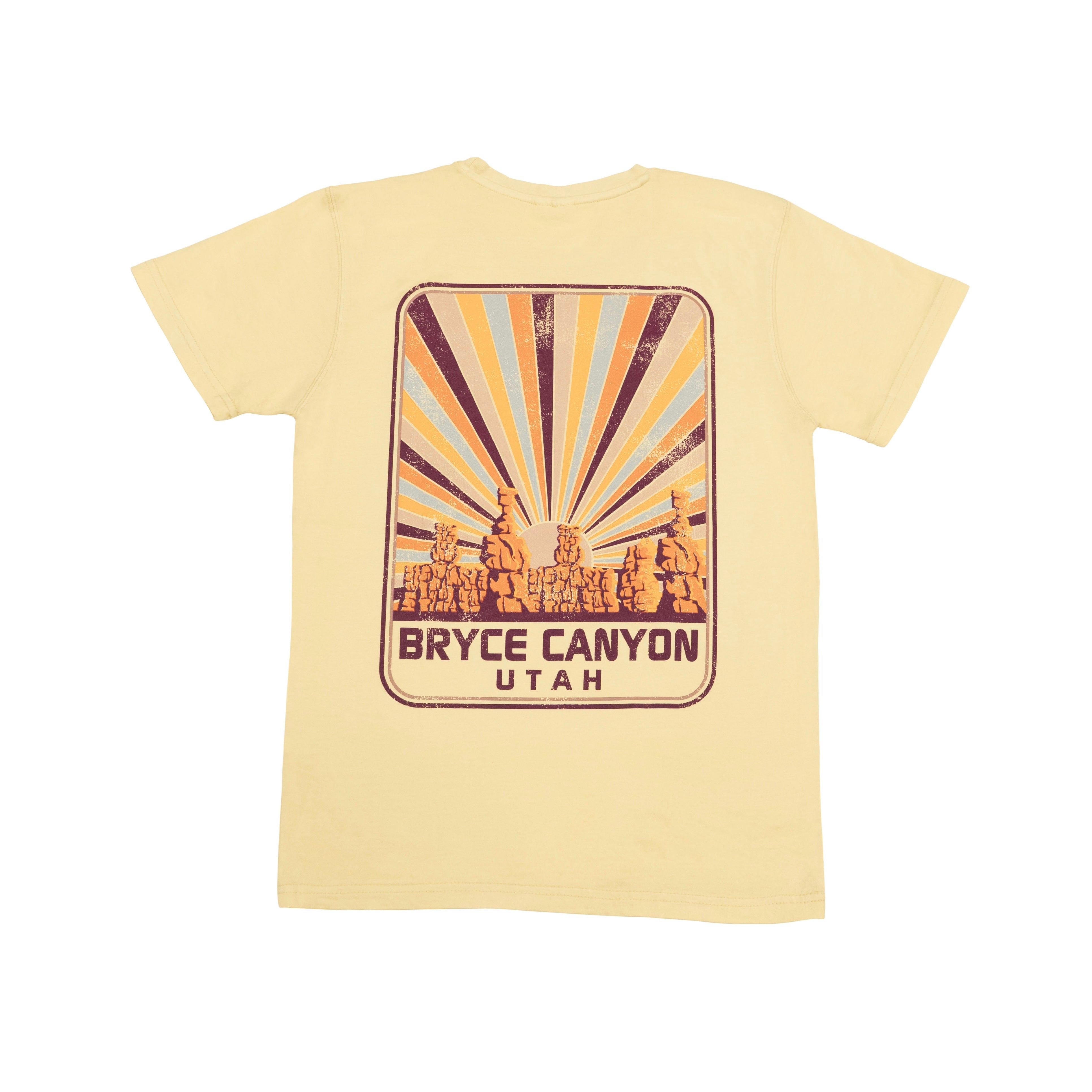 Bright, bold, and built to last, the Rise or Fall Hoodoos Tee is crafted from 100% cotton for ultimate comfort and durability. The cream-colored fabric enhances the vibrancy of the pop art-style sunrise design, which features Bryce Canyon’s legendary hoodoos. With a smaller front design and a larger statement print on the back, this tee is a stunning way to showcase your love for Bryce Canyon’s breathtaking landscapes.