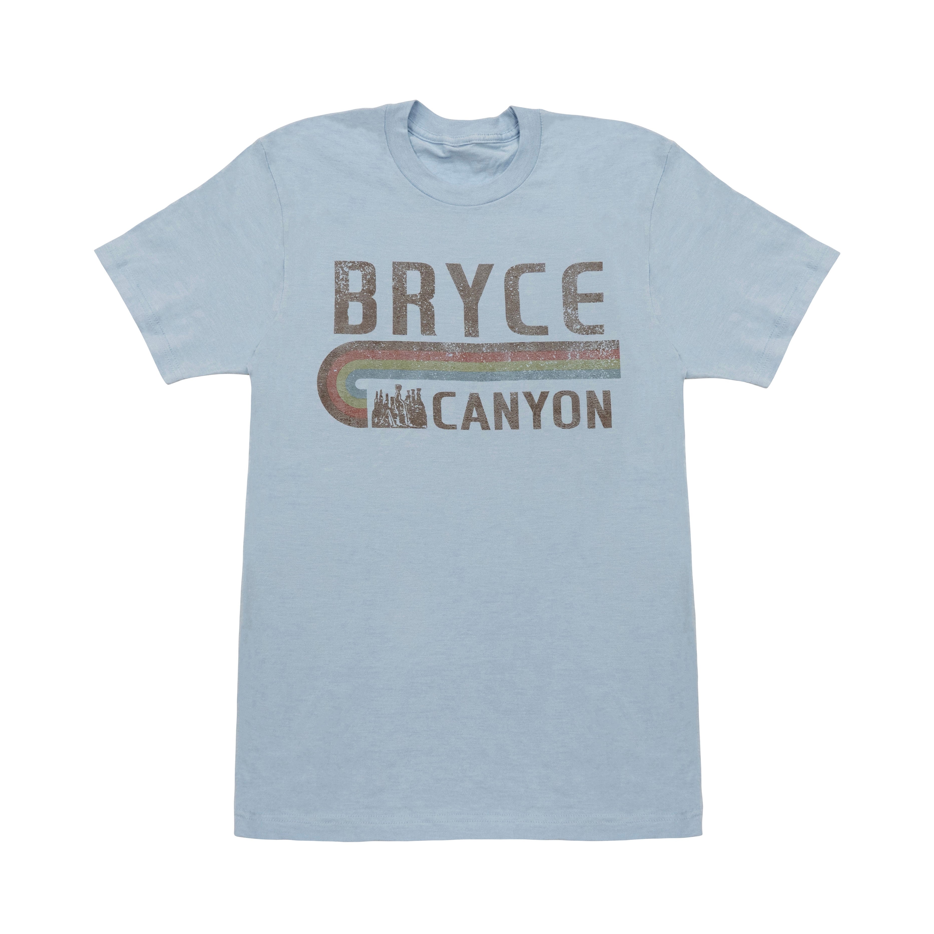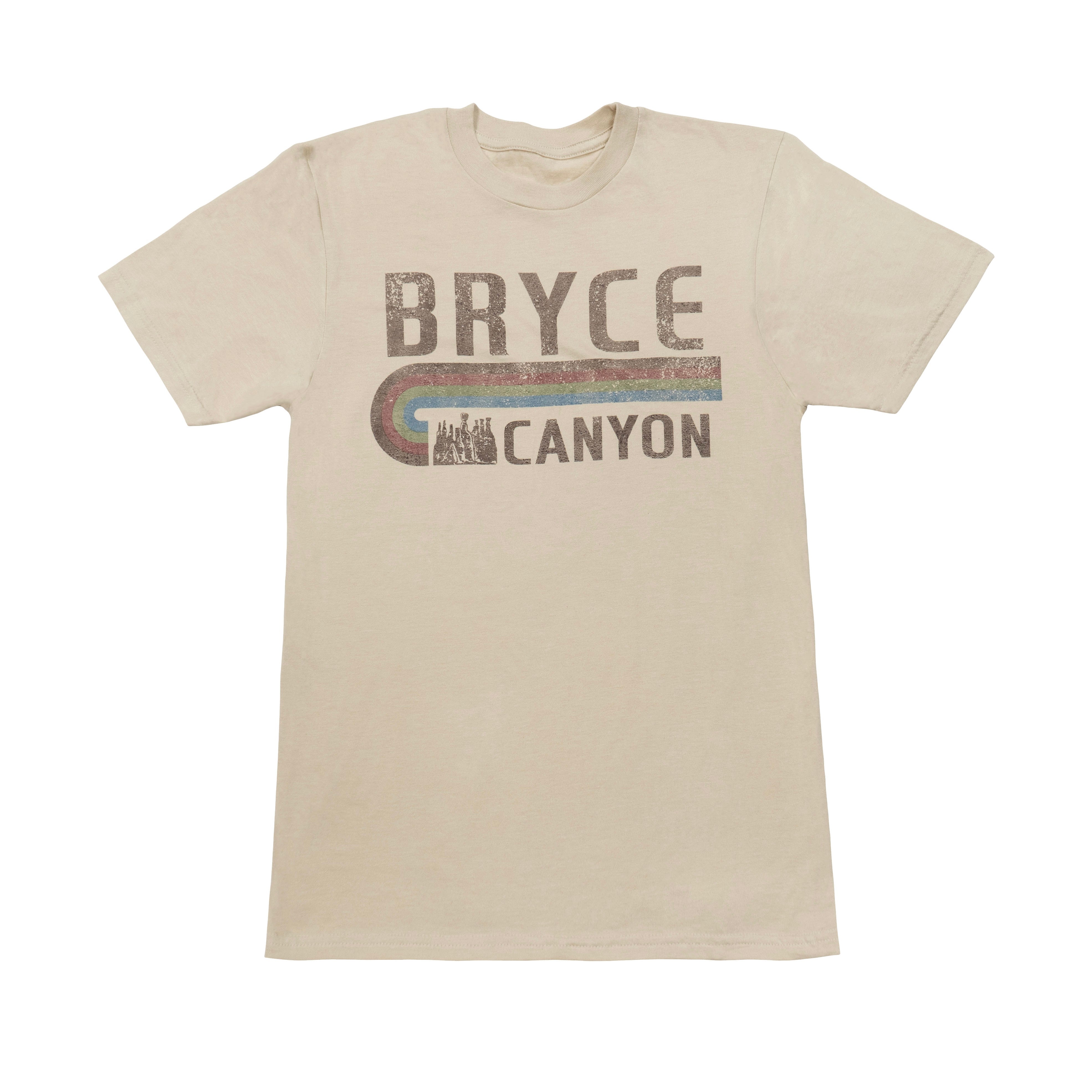 Add a splash of color to your souvenir collection. The Stripe Curve Tee stands out with rainbow-hued stripes nestled between “Bryce” and “Canyon,” plus a small silhouette of the famous hoodoos to complete the look. Bright, bold, and Bryce-approved.